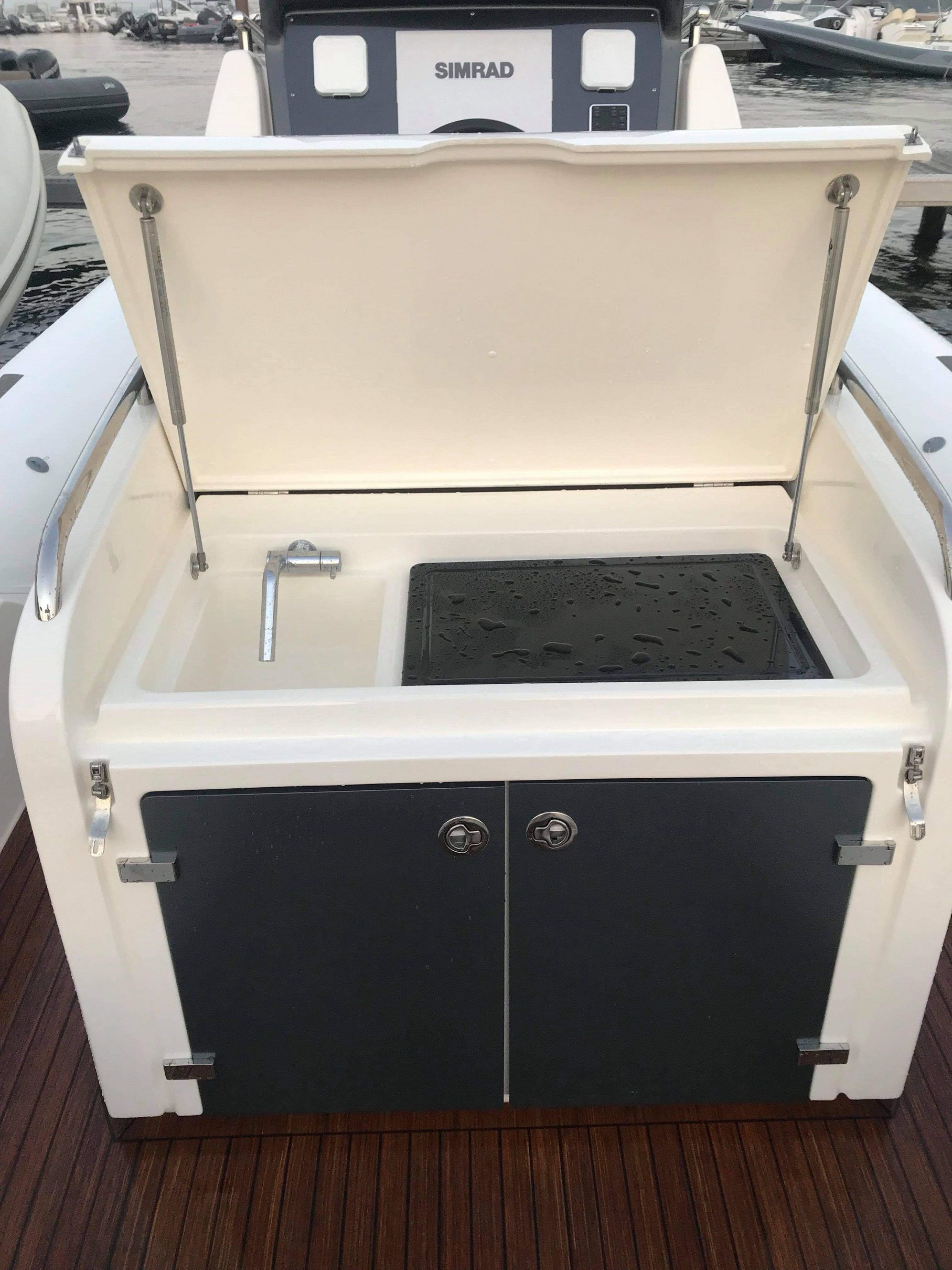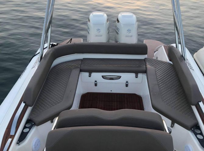 Informations généralesLongueur : 10 M. Capacité : 15 Pers. Puissance : 2x300 CV Tarif jour à partir de : 1150 € Tarif à la semaine à partir de : 6900 € -20% en basse saison Juin et Septembre | Equipements du bateauAutoradio Bain de soleil arrière Bain de soleil arrière/Table pique-nique Bain de soleil avant Carré dinette arrière Coffre avant et arrière avec vérin Coffre de rangement avant Direction hydraul |