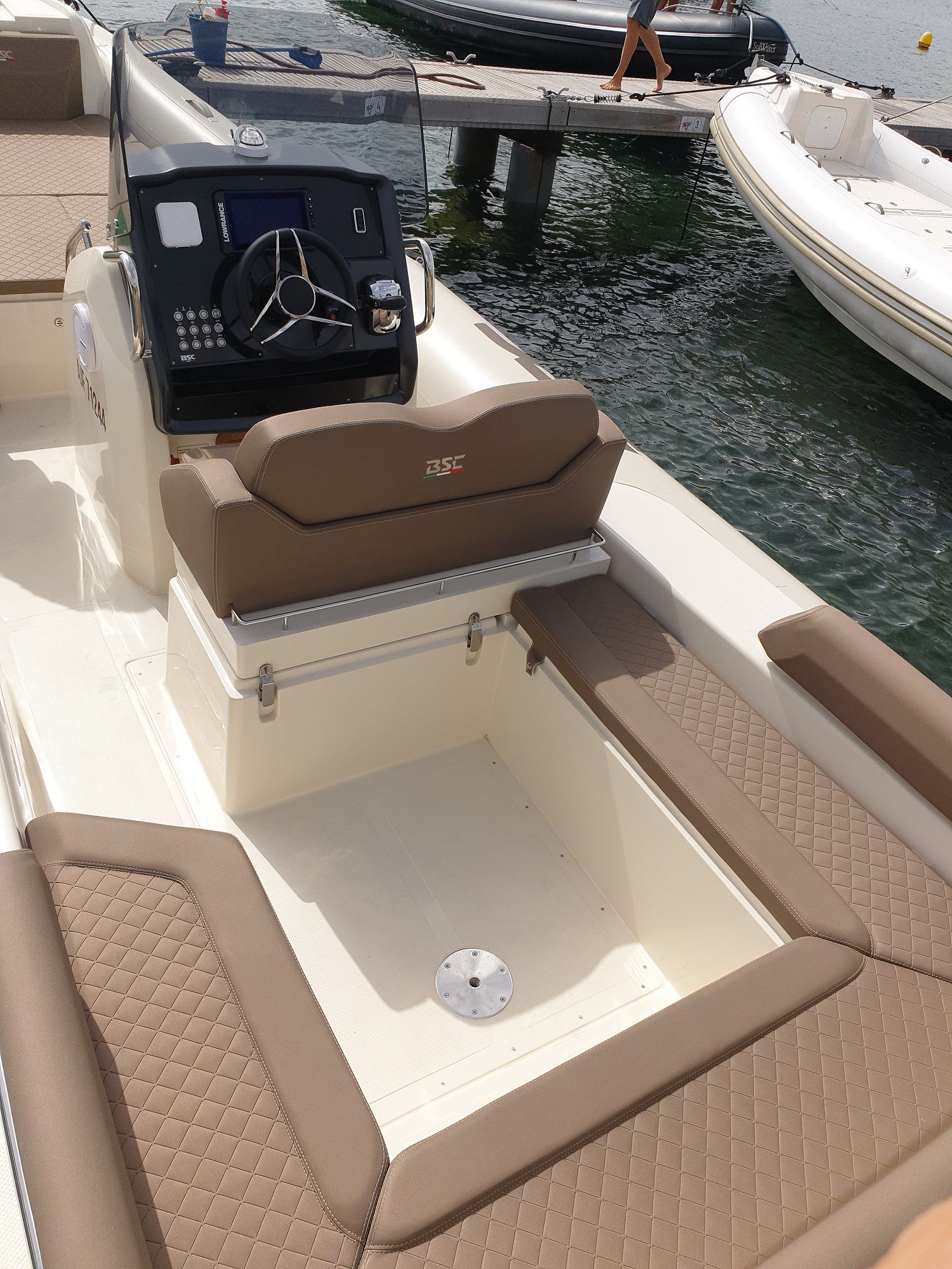 Le BSC 78 IVORY propose une silhouette élancée et offre un surcroît d’habitabilité grâce à un pont spacieux, où l’on circule facilement, une navigation confortable et un cockpit convivial au mouillage. Modèle similaire au Classic mais avec une sellerie plus travaillée et élégante.